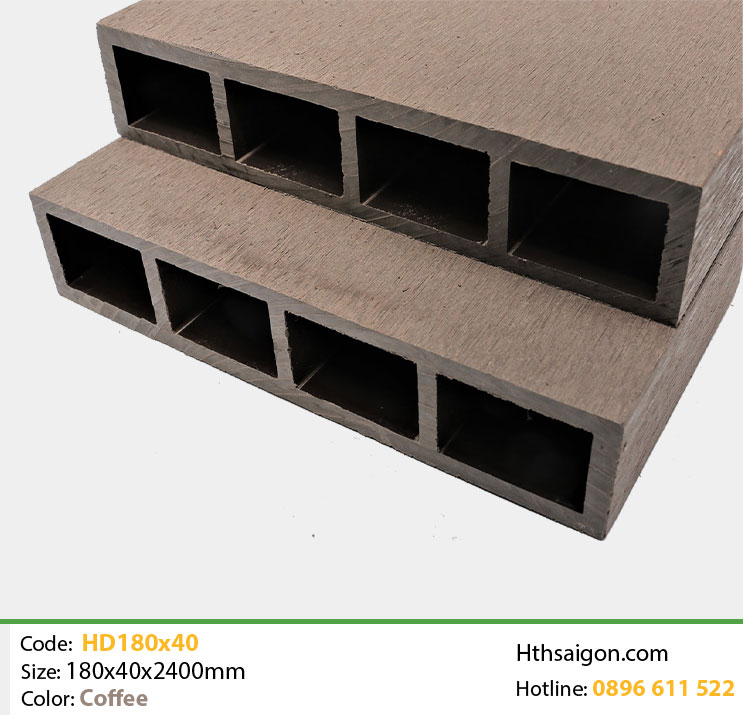 Lam lớn TPWood màu cà phê, composite chịu UV, không phai màu. Dùng trang trí sân vườn, giàn pergola lớn. Dễ thi công.