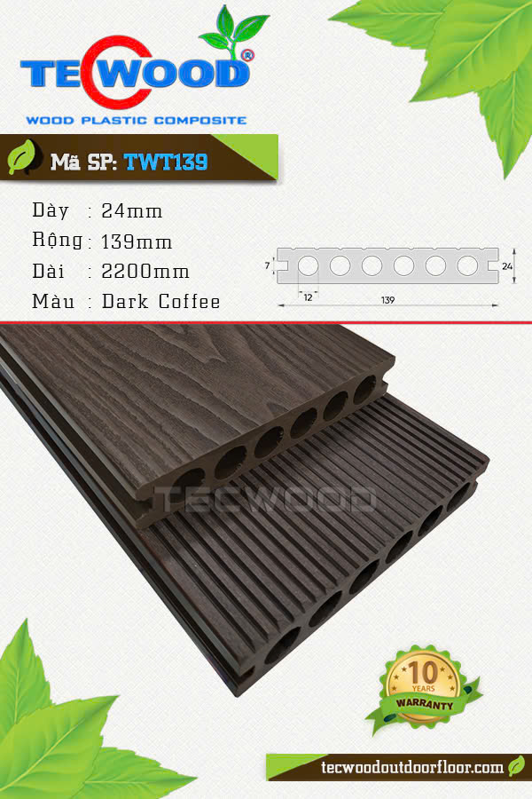 Sàn gỗ ngoài trời TecWood TWT139 – Dark Coffee