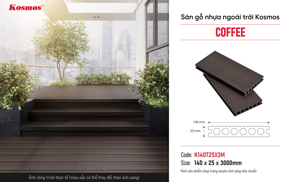 Sàn gỗ nhựa ngoài trời lỗ tròn Kosmos K140T25X3M Coffee