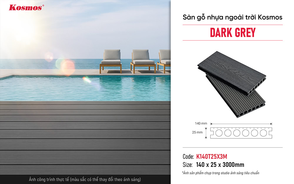 SKU: K140T25X3M-Dark Grey Danh mục: Gỗ Nhựa WPC, Sàn WPC Thương hiệu: Kosmos