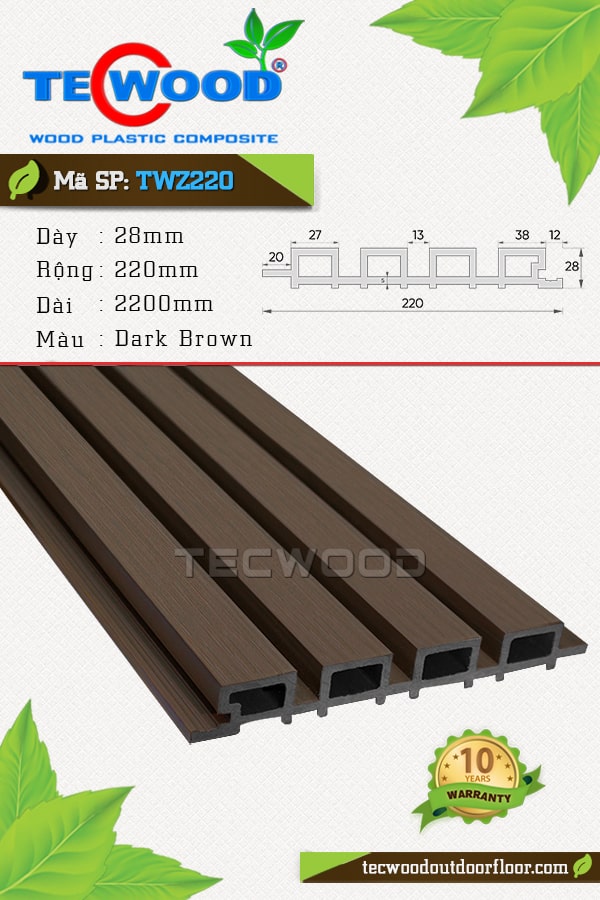 Tấm ốp gỗ nhựa TecWood TWZ220 màu Dark Brown