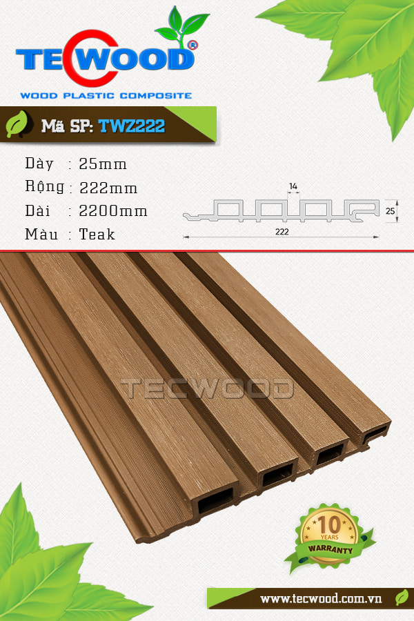SKU: TWZ222-Teak Danh mục: Gỗ Nhựa WPC, Ốp Ngoài Trời, Ốp Trần Ngoài Trời, Ốp Tường WPC, Tấm WPC Thương hiệu: TecWood