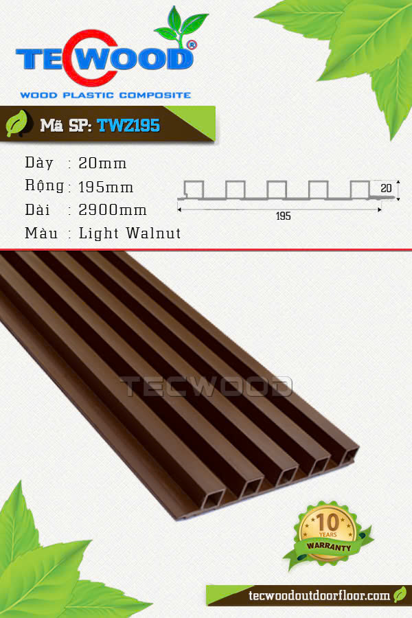 Tấm ốp lam sóng TecWood TWZ195 màu Light Walnut