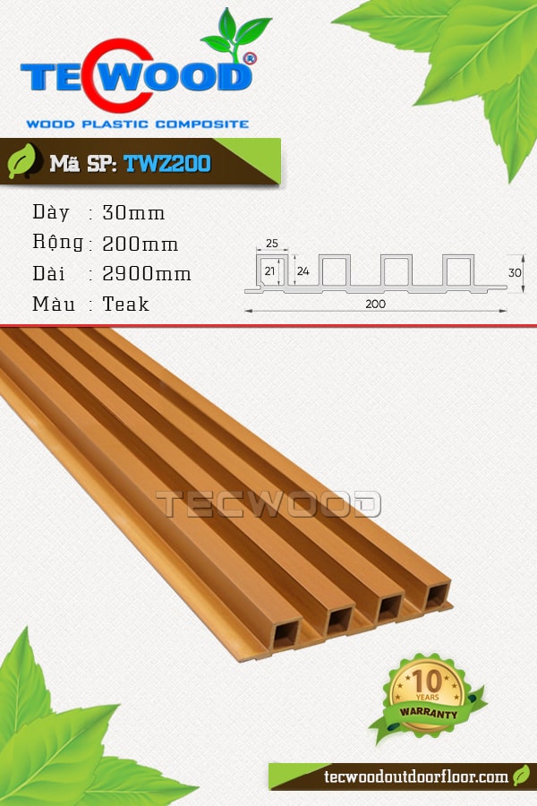 Tấm ốp lam sóng TecWood TWZ200 màu Teak