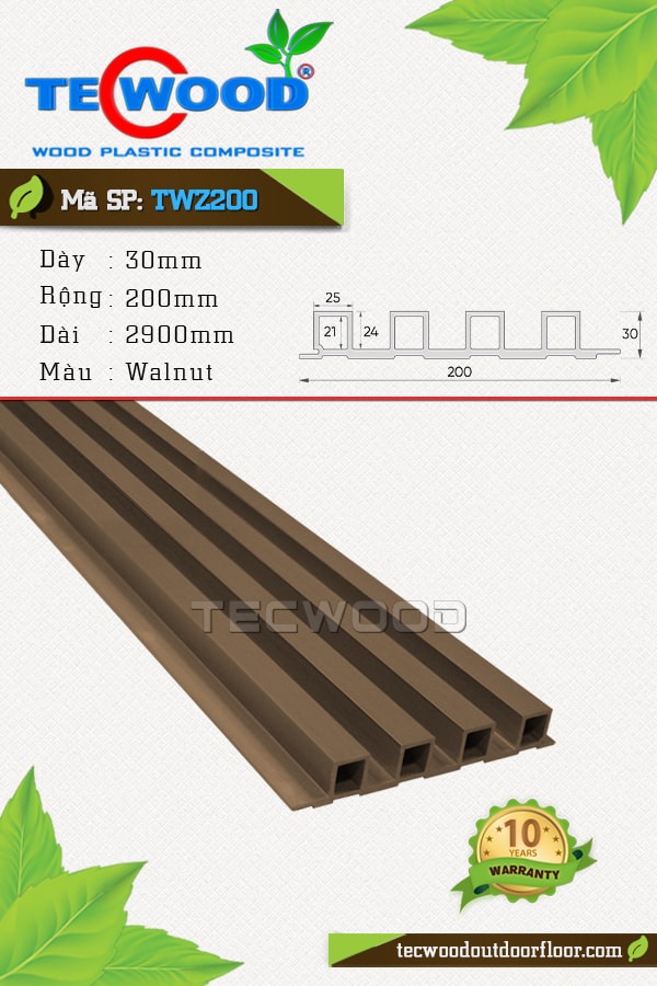 Tấm ốp lam sóng TecWood TWZ200 màu Walnut