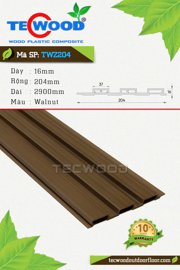 Tấm ốp lam sóng TecWood TWZ204 màu Walnut