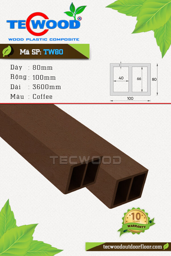 Thanh lam gỗ nhựa TecWood TW80 màu Coffee từ WPC, chịu nước tốt, không bị mối mọt. Dùng che nắng sân thượng, mặt tiền. Vân gỗ đẹp, dễ lắp đặt, độ bền lâu dài, ứng dụng pergola, facade, ceiling, hàng rào, lợi ích cách nhiệt, chống bụi, tạo môi trường gần gũi thiên nhiên.