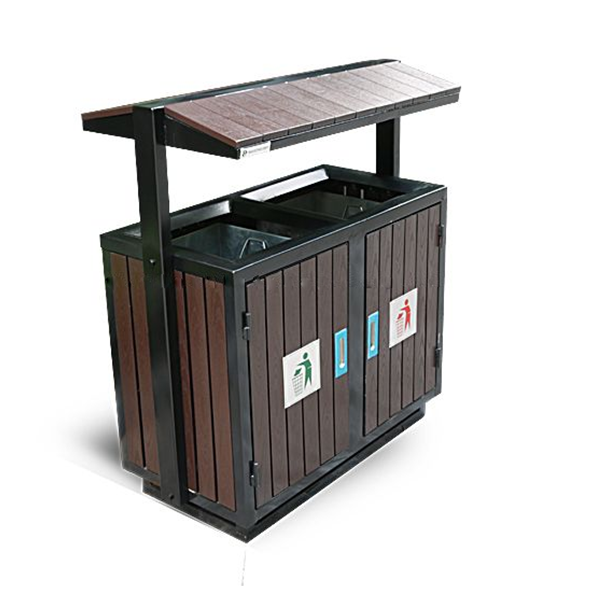 Chất liệu: Phần khung được sản xuất từ thép không rỉ, sơn tĩnh điện. Phần ốp gỗ sử dụng sản phẩm gỗ nhựa ngoài trời WPC (Wood plastic composite) được sơn phủ PU giúp cho bề mặt sản phẩm bóng, bền, đẹp, dễ vệ sinh. Phần gạt tàn được sử dụng inox SUS 304. Phần thùng chứa rác sử dụng tôn mạ kẽm hoặc bằng nhựa.